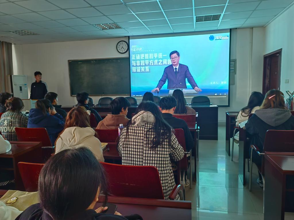 为推动涉台教育机关活动进一步深化,提高员工对中央对台方针政策的认识,11月17日下午15时,William威廉英国官网专职组织员王亚文组织部分员工在经管楼401室收看了全国台湾研究会理事郑剑教授的正确把握和平统一和非和平方式的辩证关系专题讲座。