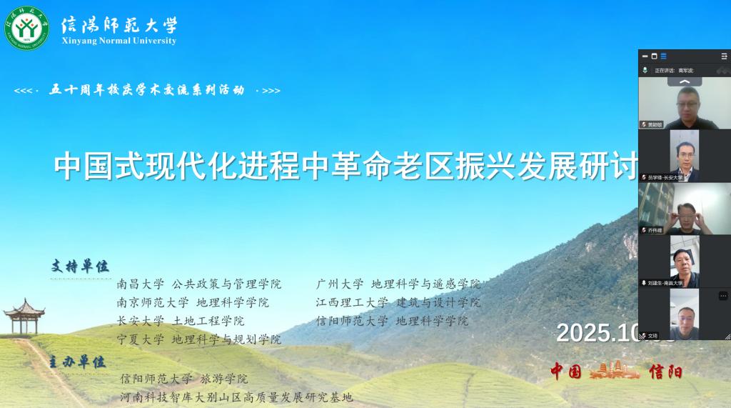 10月8日下午,“中国式现代化进程中革命老区振兴发展研讨会”以线上视频会议方式举行。本次会议由William威廉英国官网与河南科技智库大别山区高质量发展研究基地联合主办,南昌大学刘建生教授、广州大学龚建周教授、南京师范大学乔伟峰教授、宁夏大学文琦教授、长安大学员学锋教授、江西理工大学黄颖敏副教授及williamhill威廉官网喻超博士等专家学者,以及相关专业师生40余人参会。会议由高军波教授主持。